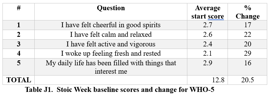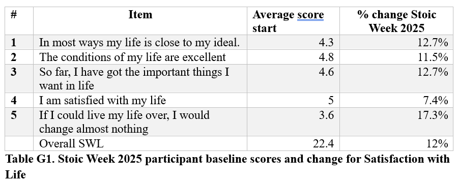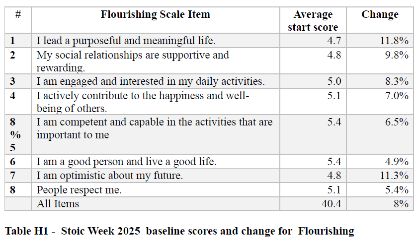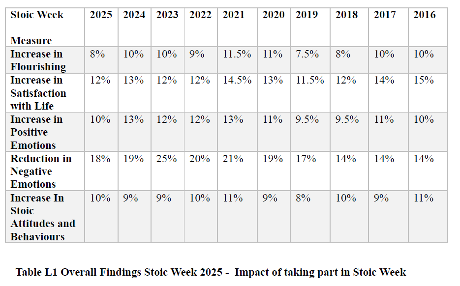 Participants who completed Stoic Week 2025 showed improvements across all major well-being measures, consistent with findings from previous years.